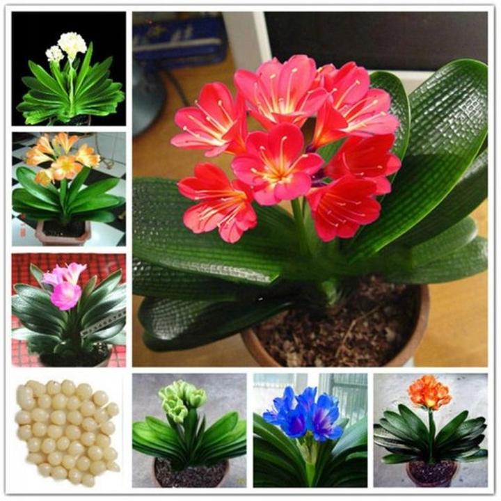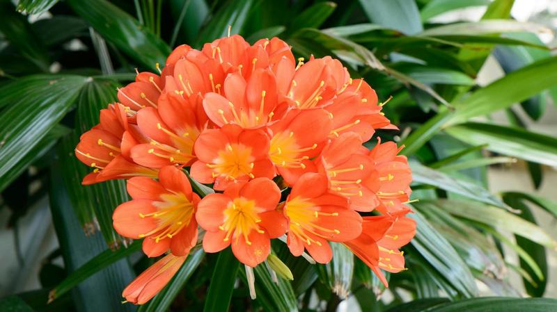 - Clivia miniata – pomarańczowe kwiaty, bardzo popularna.